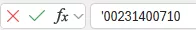 Apostrof umieszcza się na początku wpisu, ale nie jest on widoczny w komórce – pozostaje widoczny jedynie w pasku formuły: