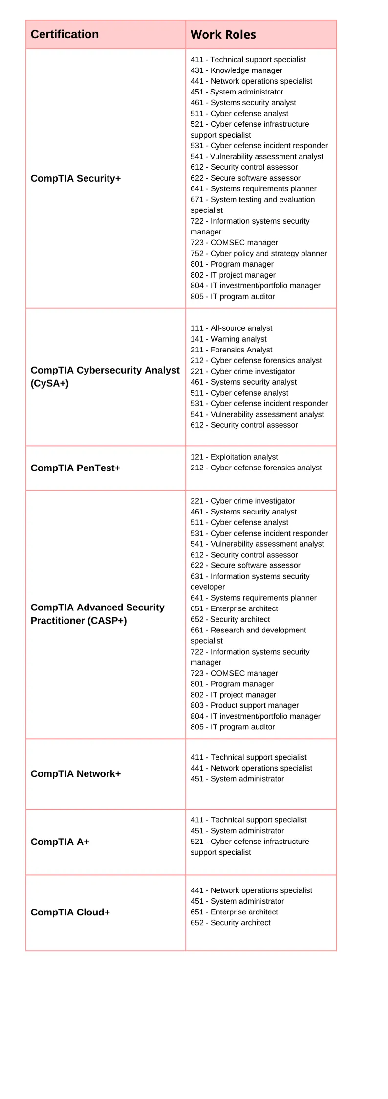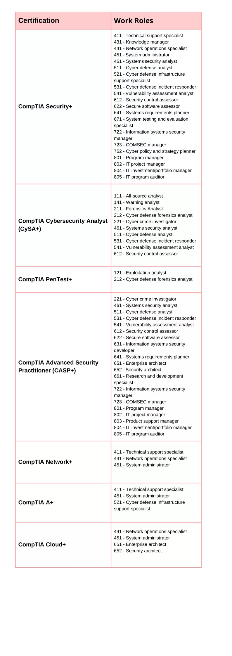 W chwili pisania tego tekstu CompTIA jest zatwierdzona dla siedmiu certyfikatów obejmujących 31 ról zawodowych.