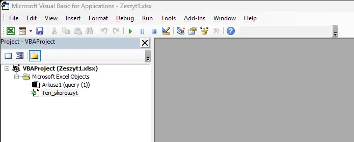 Przycisk Visual Basic otwiera edytor (Visual Basic Editor), w którym będziemy pisać kod: