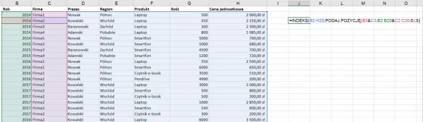 Tak więc nasza funkcja INDEKS() będzie w ostatecznej wersji wyglądała następująco: