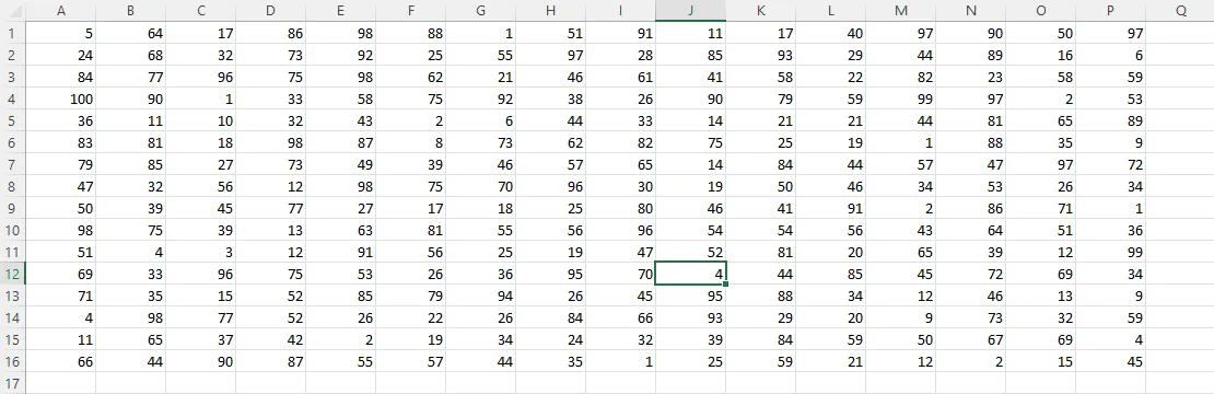 Na początek zobaczmy jak użyć formatowania warunkowego do wyróżnienia komórek, w których wartość jest większa niż 60. Poniższy rysunek przedstawia dane, co do których chcemy takie formatowanie zastosować.