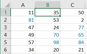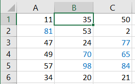Po zatwierdzeniu w oknach formatowania komórek i definiowania reguły zobaczymy w arkuszu, że rzeczywiście wszystkie liczby większe od 60 są zapisane niebieskim kolorem czcionki. Po dokonaniu zmian wartości zobaczymy, że formatowanie warunkowe zmienia się dynamicznie.