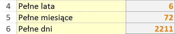 “ym” – pozwoli wyznaczyć ile nadmiarowych miesięcy mija względem już policzonych lat. Gdybyśmy więc chcieli przeprowadzić na nasze potrzeby dodatkowe obliczenia: