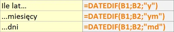 Funkcja DATA.RÓŻNICA (DATEDIF)