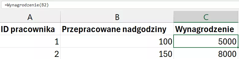 Wyobraź sobie, że firma chce wypłacić pracownikom wynagrodzenie za nadgodziny. Standardowa stawka za godzinę wynosi 50 zł, lecz pracownicy np. z wyższym stanowiskiem otrzymują większe wynagrodzenie. Funkcję LAMBDA() będzie można wywołać bez argumentu „stawka”, wówczas do obliczeń użyjemy wartości domyślnej 50zł, gdy argument będzie podany – użyjemy do obliczeń podanej wartości.