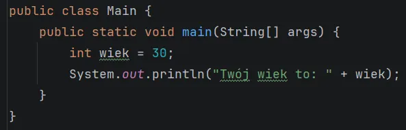 Aby najlepiej to zilustrować, spójrzmy na proste zestawienie kodów w językach Java i Python. Załóżmy, że chcemy zapisać w pamięci wiek użytkownika jako liczbę całkowitą, a następnie wyświetlić z nią krótki komunikat na ekranie.