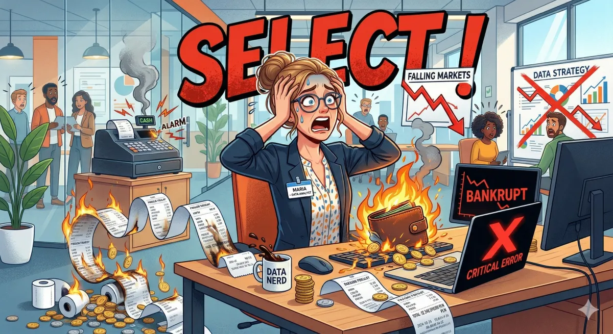 Co tu robimy źle? Po pierwsze – użyliśmy *. Pobieramy długie opisy, adresy dostawy i kody pocztowe, chociaż chcieliśmy tylko sprawdzić wczorajsze przychody. Po drugie – nie daliśmy żadnego filtru. BigQuery skanuje całą historię firmy od samego początku jej istnienia.