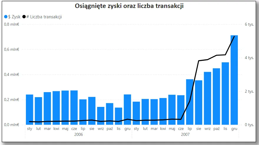 Jeżeli kolumny byłyby zyskiem a linie liczbą transakcji wtedy jak najbardziej można taki wykres w ten sposób przedstawić.