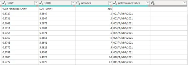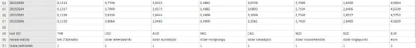 Ostatnim etapem, który może nam spędzać jeszcze sen z powiem jest sposób zapisu danych na nbp.pl. Kolumna Wartość odpowiada kosztowi określonej liczby jednostek waluty.