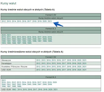 Skąd wziąć kursy walut za cały obecny rok?