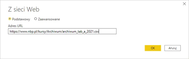 Przekazanie Power BI/Excel informacji o pliku z nbp.pl