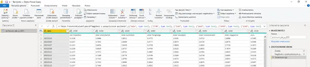 Zostaniemy przeniesieni do okna Power Query z podglądem danych źródła: