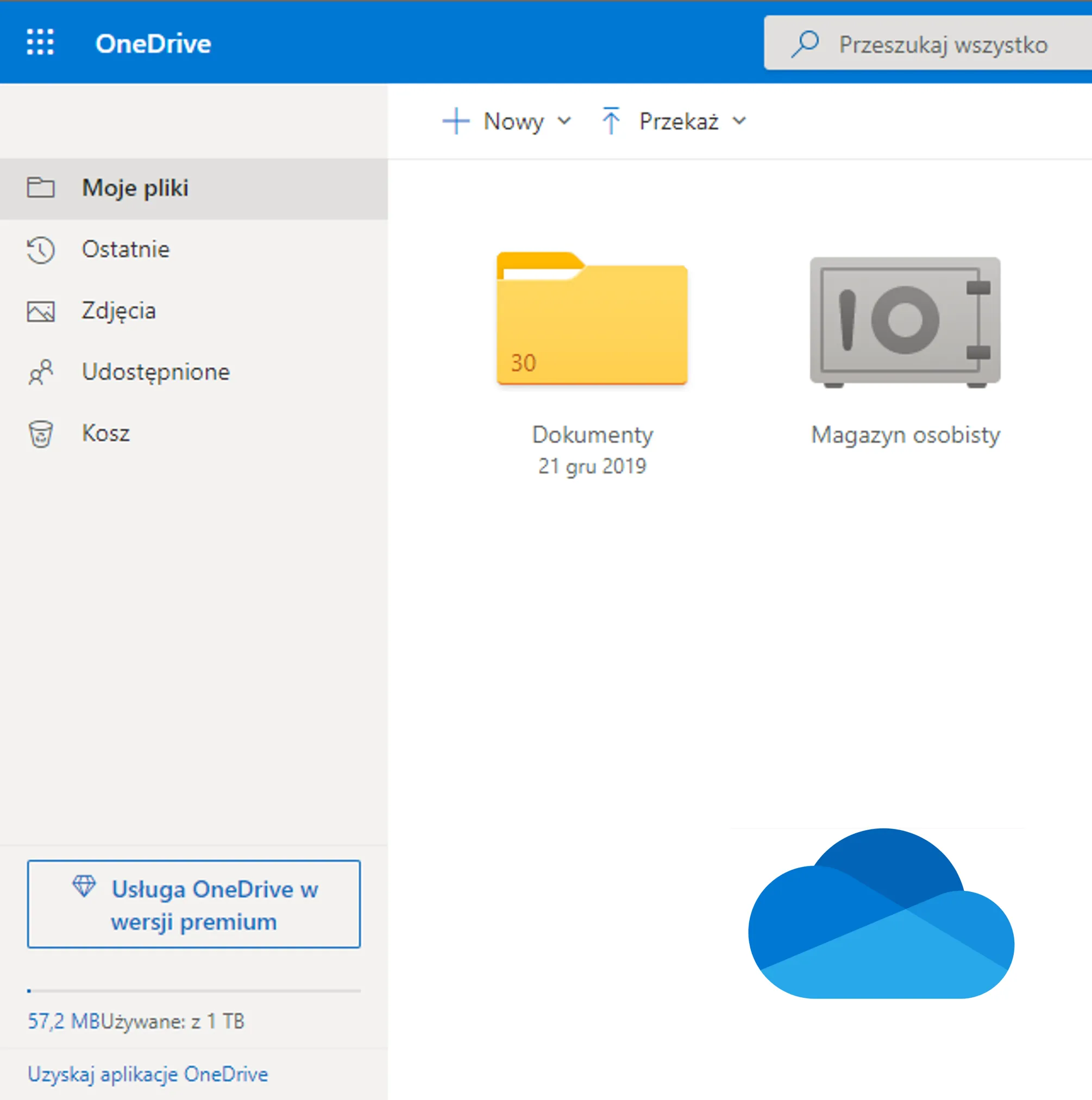 Aby stworzyć kopię zapasową w OneDrive, należy wejść na stronę www.office.com lub www.microsoft.com, a następnie przejść do zakładki OneDrive. W następnym kroku, w głównym oknie oprócz ostatnio przesłanych plików na górnym pasku pojawią się dwie funkcje „Nowy” i „Przekaż”. Ta pierwsza służy do tworzenia plików w OneDrive, a druga do przechowywania plików w chmurze. Po kliknięciu w przycisk „Przekaż”, program poprosi o wskazanie jaki rodzaj pliku chcemy przenieś, po dokonaniu tego wyboru automatycznie pojawi się okienko z plikami do wyboru. Zapisana kopia dokumentu pojawi się, w głównym oknie.