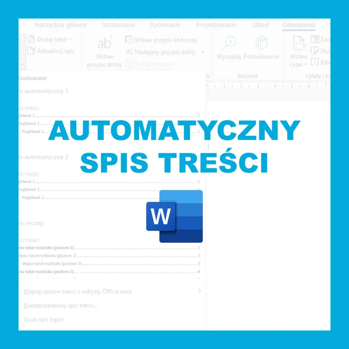 Po przypisaniu stylu do wszystkich rozdziałów i podrozdziałów należy zaznaczyć, w którym miejscu w tekście ma pojawić się spis treści, przejść do zakładki ODWOŁANIA i w sekcji SPIS TREŚCI wybrać funkcję o tej samej nazwie. Spis treści zostanie wygenerowany automatycznie, co więcej jeżeli dokument zostanie wzbogacony o dodatkową treść lub nazwa rozdziału zostanie zmieniona, to w celu aktualizacji spisu należy kliknąć AKTUALIZUJ WSPIS, a następnie wybrać AKTUALIZACJA CAŁEGO WPISU. Co ważne w MS Word w spisie treści można zmienić nazwę tytułu lub podrozdziału, jednak nie przekłada się to na automatyczne zmiany w dalszej części tekstu.