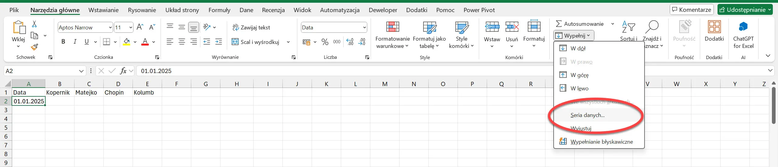 Seria danych w MS Excel