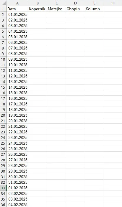 (jest to oczywiście tylko początek wygenerowanych dat).