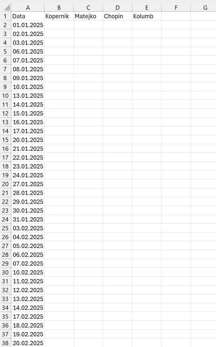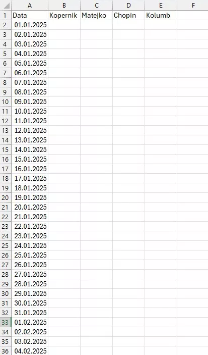 Jak w Excelu wypełnić kolumnę dniami do końca roku?