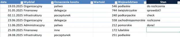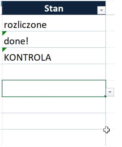Gotowe! Od tej chwili uzupełnianie kolumny „Stan” to czysta przyjemność – wystarczy wybrać odpowiednią pozycję z listy: