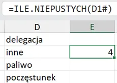 Symbol „#” nakazuje Excelowi uwzględnić cały „rozlany” zakres – niezależnie od tego, czy zawiera on 4, czy 44 pozycje.