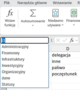 Co ważne, nie ograniczamy się tylko do klikania myszką. Wartości możemy również wpisywać bezpośrednio z klawiatury. Excel zadba jednak o to, by każda wpisana fraza była zgodna ze zdefiniowanym wzorcem. Choć Excel standardowo nie pilnuje wielkości liter przy wpisywaniu (zaakceptuje zarówno „kontrola”, jak i „KONTROLA”), to każda literówka lub dodatkowa spacja zostanie natychmiast wyłapana.