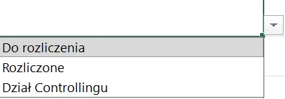 Jeśli teraz zmienimy wartość w arkuszu pomocniczym (np. zamienimy „KONTROLA” na „Dział Controllingu”), opcje naszej listy rozwijanej zaktualizują się automatycznie we wszystkich komórkach.