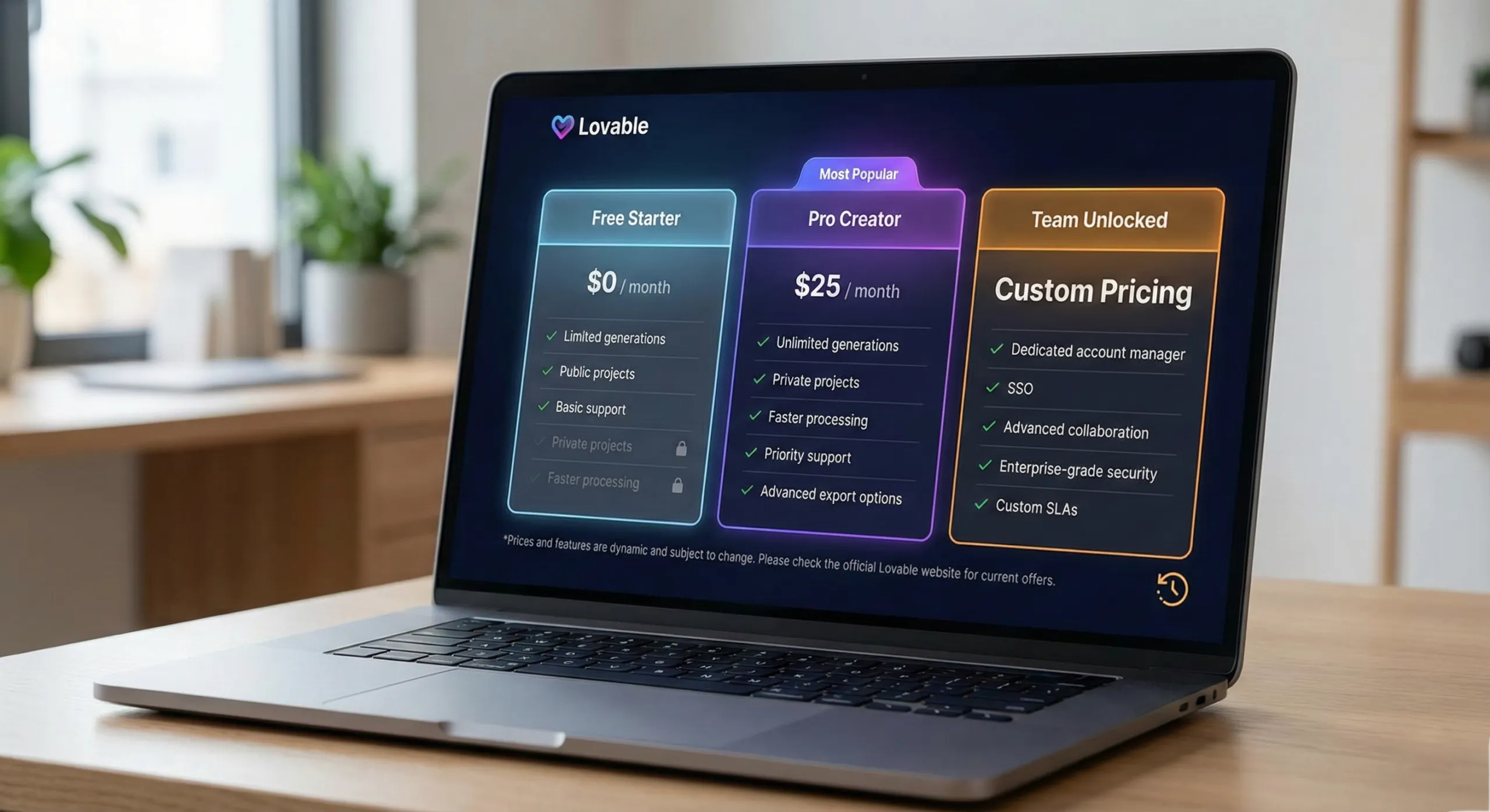 Ważna uwaga: Cenniki narzędzi AI zmieniają się bardzo dynamicznie. Poniższy opis to przykład, zawsze sprawdź aktualną ofertę na oficjalnej stronie Lovable.