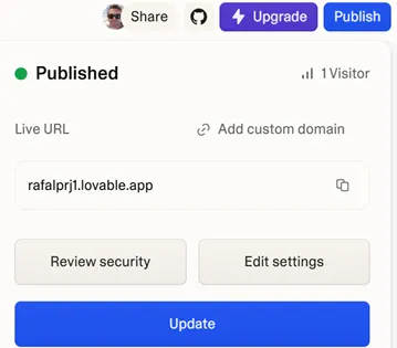 - Jedno kliknięcie: Po wciśnięciu przycisku Lovable pakuje Twój kod, konfiguruje serwer i „wrzuca” Twoją aplikację do sieci. Trwa to zazwyczaj kilka sekund.