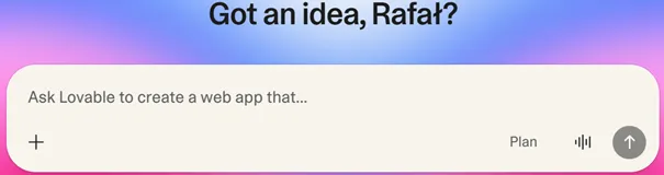 Po zalogowaniu do Lovable wita Cię niezwykle prosty interfejs. Wygląda on niemal identycznie jak okno czatu, które znasz z ChatGPT. Nie ma tu skomplikowanych pasków narzędzi ani edytorów kodu. Jest tylko pole tekstowe.