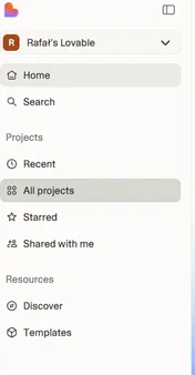 - All projects (Wszystkie projekty) To Twoje centrum dowodzenia. Lovable zapisuje Twoją pracę automatycznie, więc nie musisz szukać przycisku „Save”. Jeśli przypadkiem zamkniesz przeglądarkę, po powrocie wystarczy kliknąć tutaj, aby znaleźć swoją aplikację dokładnie w tym samym stanie, w jakim ją zostawiłeś. Warto tu zaglądać, aby porządkować swoje eksperymenty.