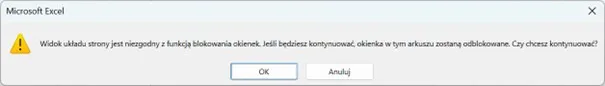 Powyższy sposób pracy z nagłówkiem i stopką ma niestety jeden drobny haczyk. Jeśli w arkuszu z danymi masz zablokowane okienka (poprzez narzędzie Zablokuj okienka z karty Widok na wstążce), to aby przejść do widoku Układu strony musisz te okienka odblokować. Oczywiście potem możesz je ponownie zablokować.