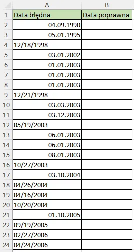 Naprawa błędnych dat w Excelu
