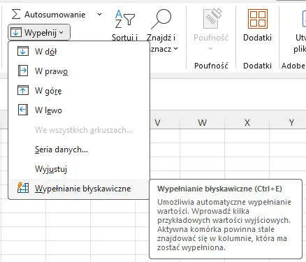 - To samo polecenie znajdziesz również na karcie Dane w sekcji Narzędzia danych lub możesz skorzystać ze skrótu klawiszowego [Ctrl+E].