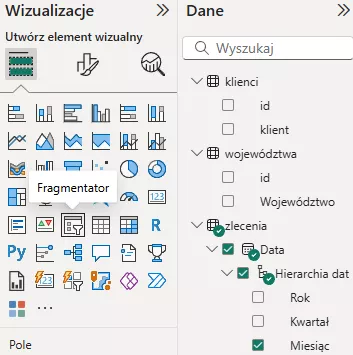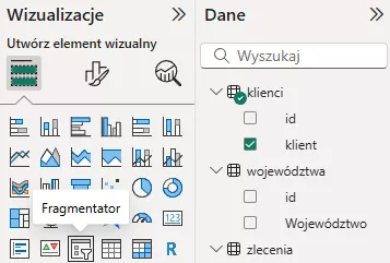 Zauważ, że klikając na jeden z fragmentatorów, przy innych wizualizacjach pojawiły się nowe ikony: