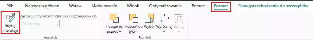 Przechodzimy do zakładki Format, a następnie klikamy Edytuj interakcje: