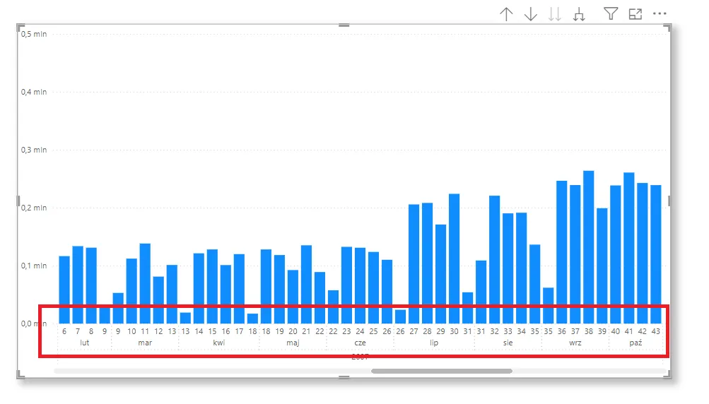 Na przykład, jeśli analizujemy dane sprzedaży na poziomie dni, ale nasze dane mają tylko informacje miesięczne, może to prowadzić do niedokładnych wniosków. Podobna sytuacja może wystąpić także, w drugą stronę, kiedy potrzebujemy porównać się do np. najlepszego okresu w historii działalności naszej firmy, ale posiadamy dane bardzo szczegółowe np. na poziomie pojedynczej sprzedaży, w każdym dniu podobnie jak na obrazie powyżej. W takim przypadku konieczne będzie dostosowanie poziomu ziarnistości, aby uzyskać odpowiednią dokładność analizy, ale do tego tematu wrócimy w dalszej części artykułu.