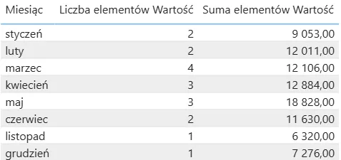 Na stronie raportu Power BI chcemy rozliczyć liczbę zleceń oraz wartość zleceń każdego klienta.