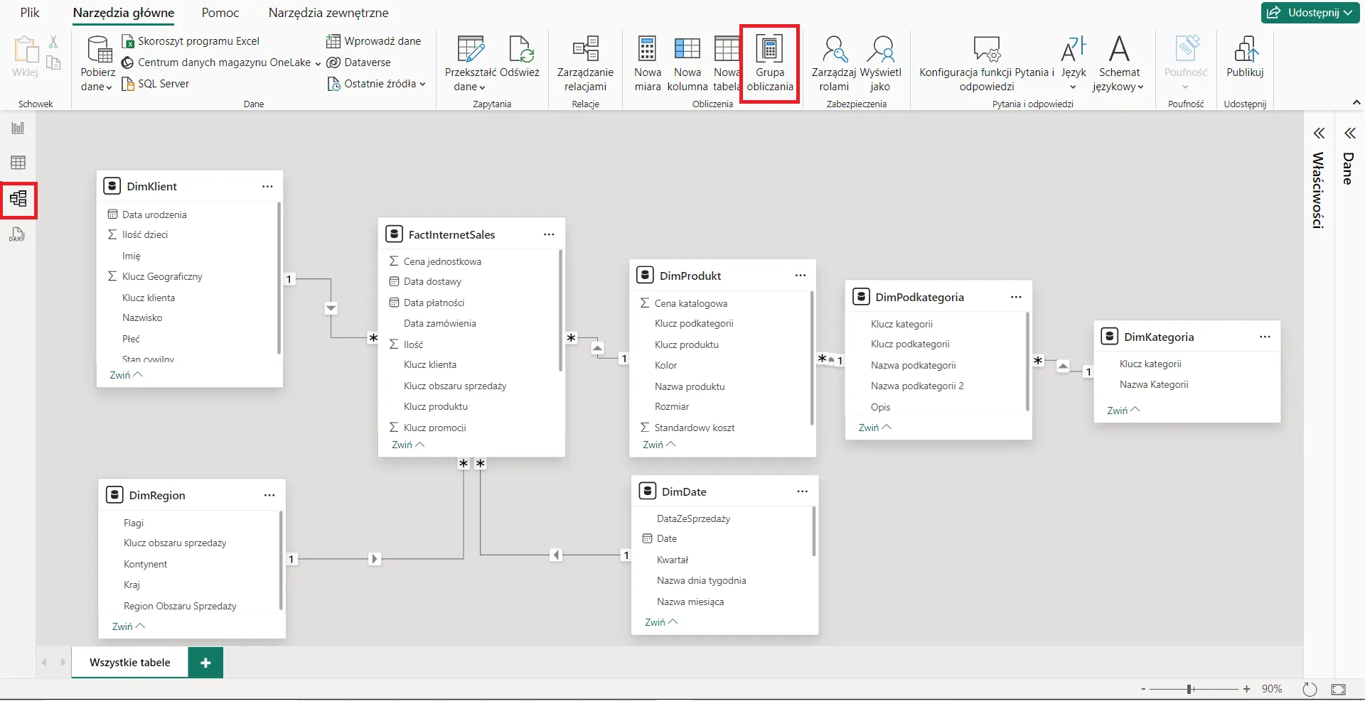 W ten sposób możemy w Power BI Desktop utworzyć grupy obliczane a w nich elementy obliczeniowe. Zobaczmy zatem na widoku raportu ich zastosowanie w praktyce.