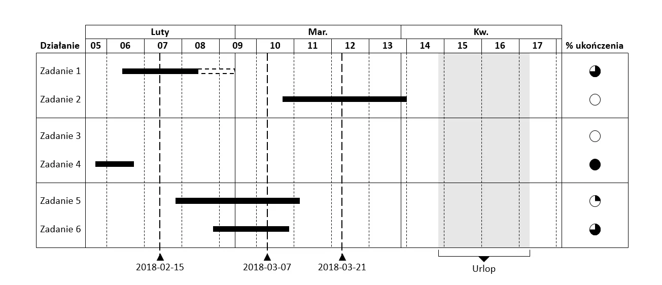 Think Cell pozwala nam też bardzo szybko i prosto stworzyć wykres Gantta.