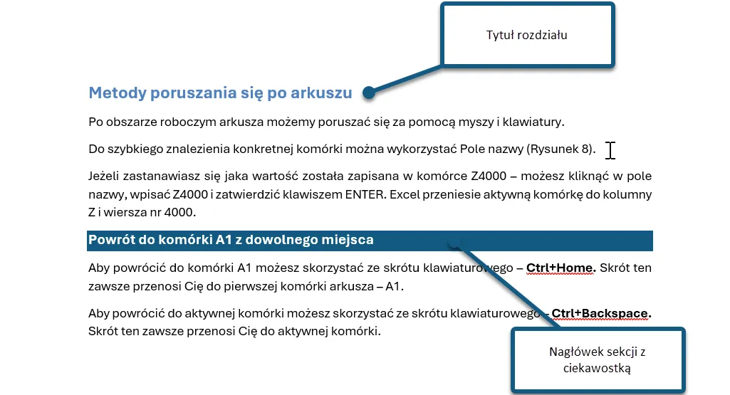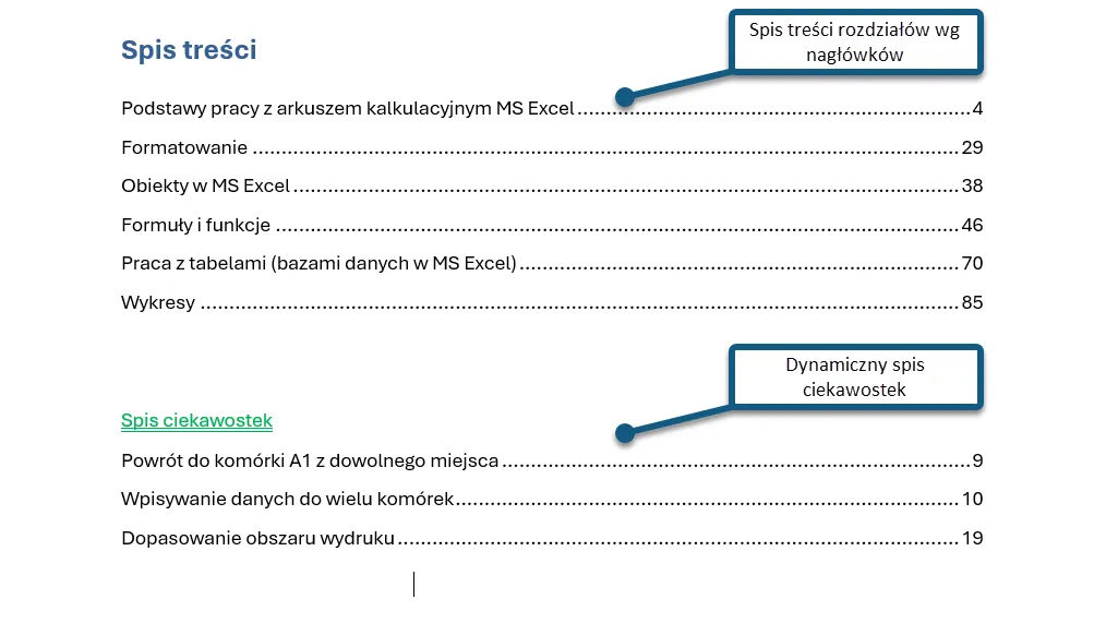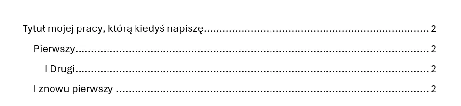 Od tej pory mamy w dokumencie kolejny dynamiczny spis treści, który pobiera wpisy pozornie niewidzialne dla użytkownika.