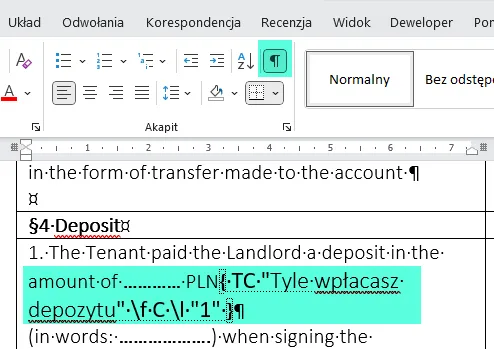 W dokumencie możesz zobaczyć „dziwne” znaki. Nie przejmuj się nimi.