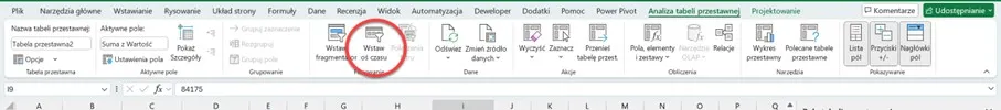 Jednak na wstążce na karcie Analiza tabeli przestawnej możesz także wybrać opcję Wstaw oś czasu: