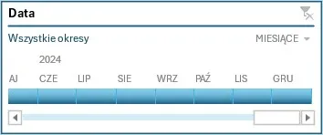 Po wybraniu odpowiedniego pola (w naszym przypadku będzie to pole Data) dostaniesz wstawioną do arkusza oś czasu wyglądającą analogicznie do tej:
