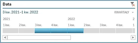 Przykładowo, wybierając opcję Kwartały, oś czasu będzie wyglądała następująco: