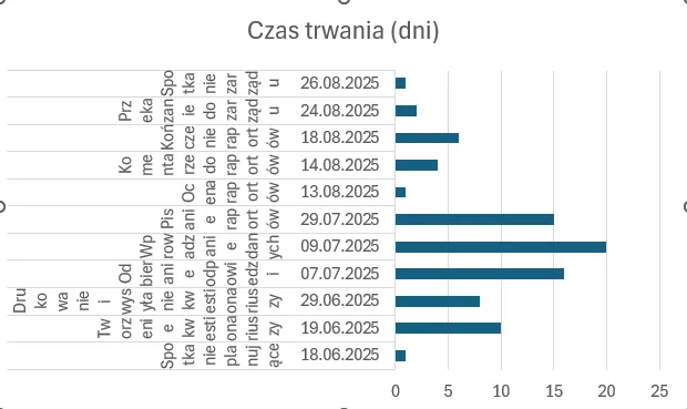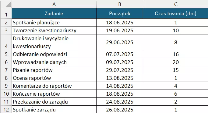 Do przygotowania wykresu Gantta w MS Excel potrzebujemy: