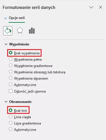 Zaznaczamy Brak linii i Brak wypełnienia: