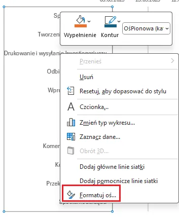 Kolejny krok to odwrócenie kategorii osi pionowej. Klikamy prawym przyciskiem myszy na osi Y: